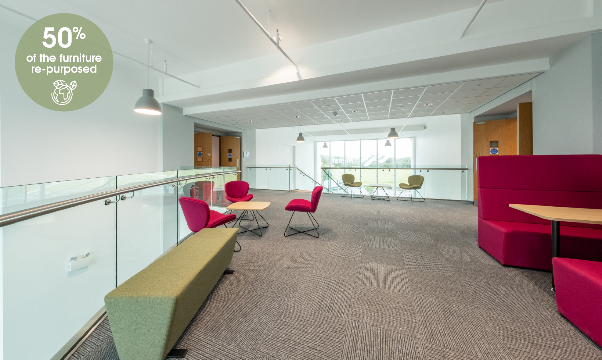50% of the furniture was re-purposed from the clients existing furniture stock. Using our knowledge and expertise we space planned the existing product from the clients previous building to meet budget expectations - taking a sustainable approach. Our goal at BOF is to protect the environment through sustainable furniture design and supply. We provided quotations to refurbish over 1000 chairs following site surveys, avoiding the need to purchase new.