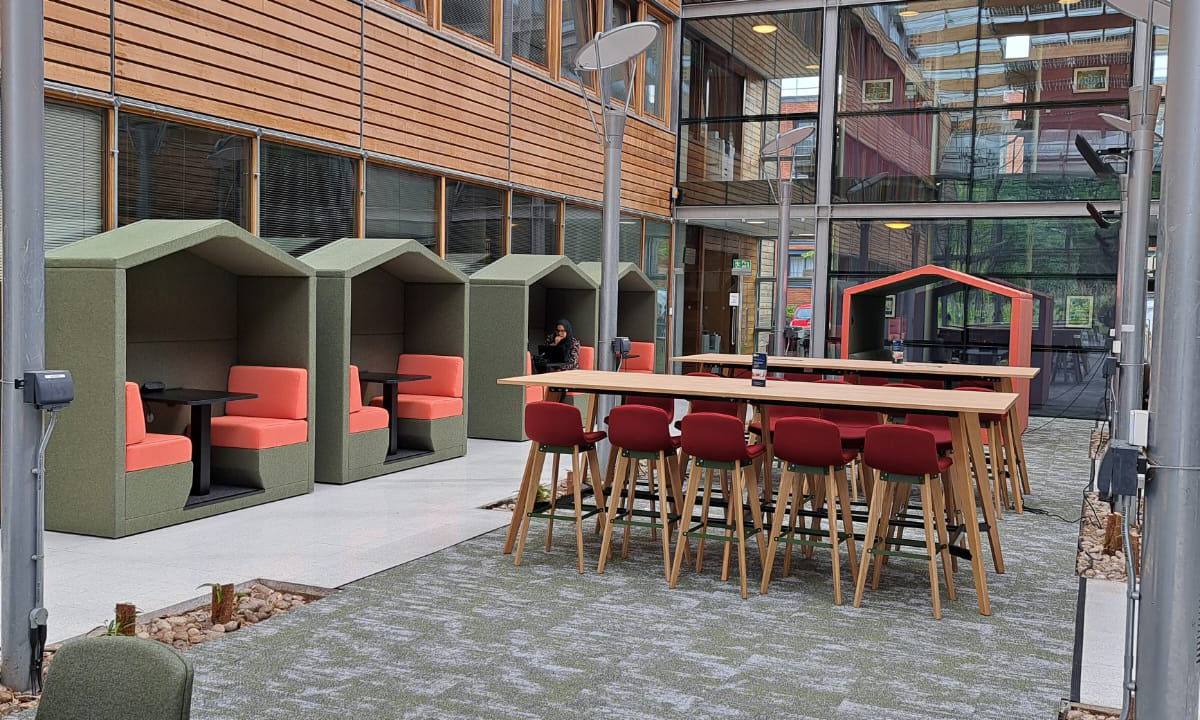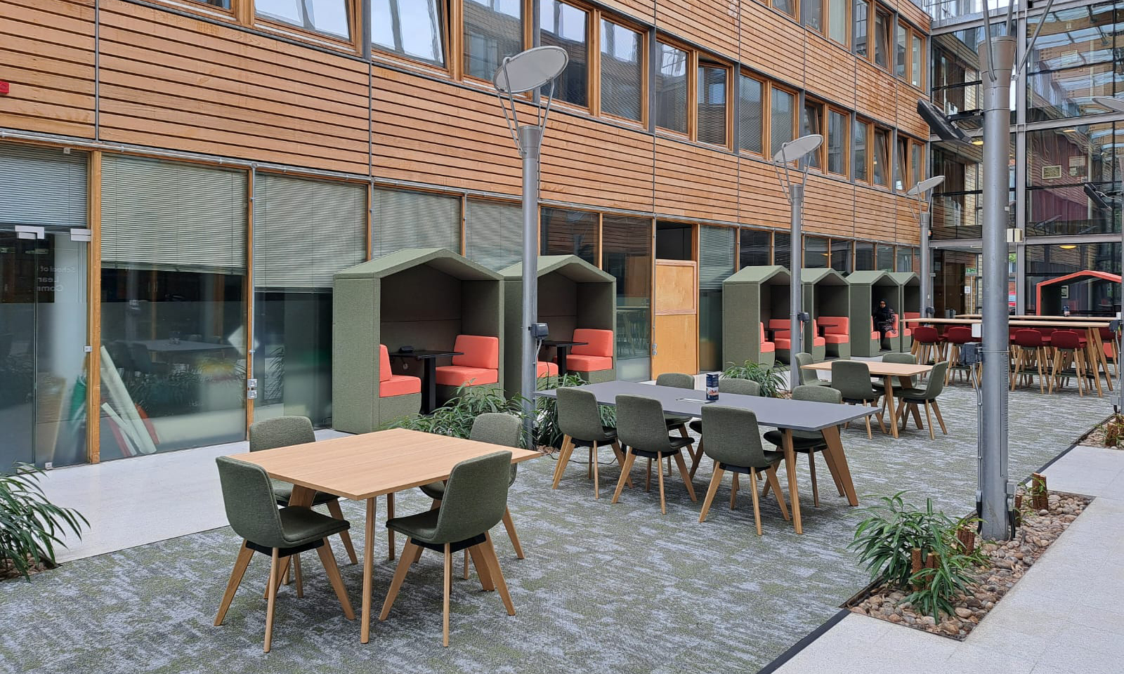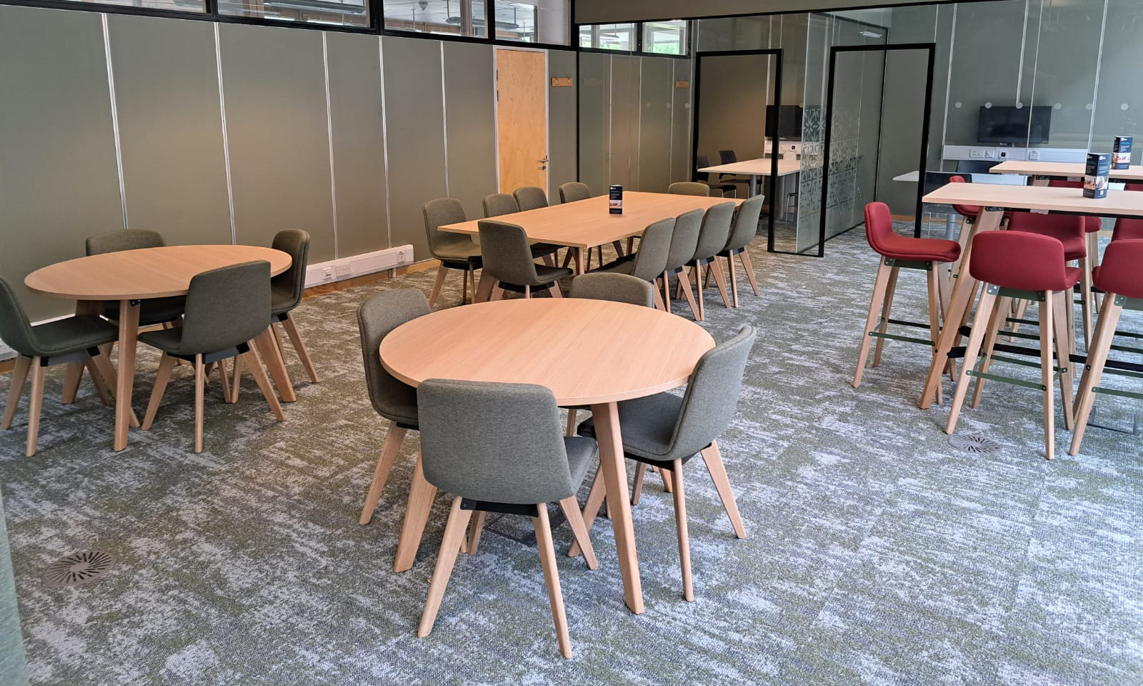 We were delighted to provide the entire furniture package for the Dearing Building – School of Education. Through the interior design and product selections we integrated the importance of the Campus sustainable features, by creating flexible working spaces and back by an biophilic colour scheme and fabrics boasting a sustainable ethos - Jubilee Campus is an exemplar of brownfield regeneration and has impeccable green credentials.