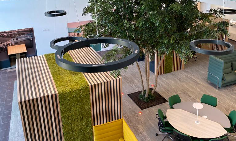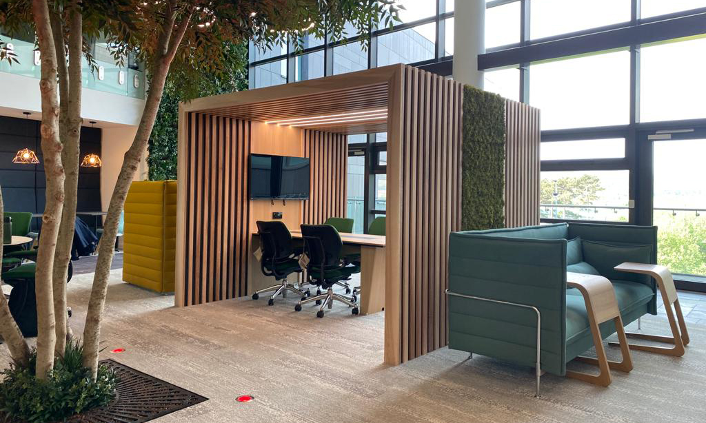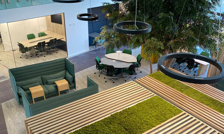 BOF creatively planned the entire 'Smart working Environment' delivering a visually inspired agile space, through functional design and innovation. Introducing a variety of agile and collaborative settings to support modern hybrid working. Biophilia was integrated into this prestigious project, generating many benefits for staff including wellbeing and productivity.