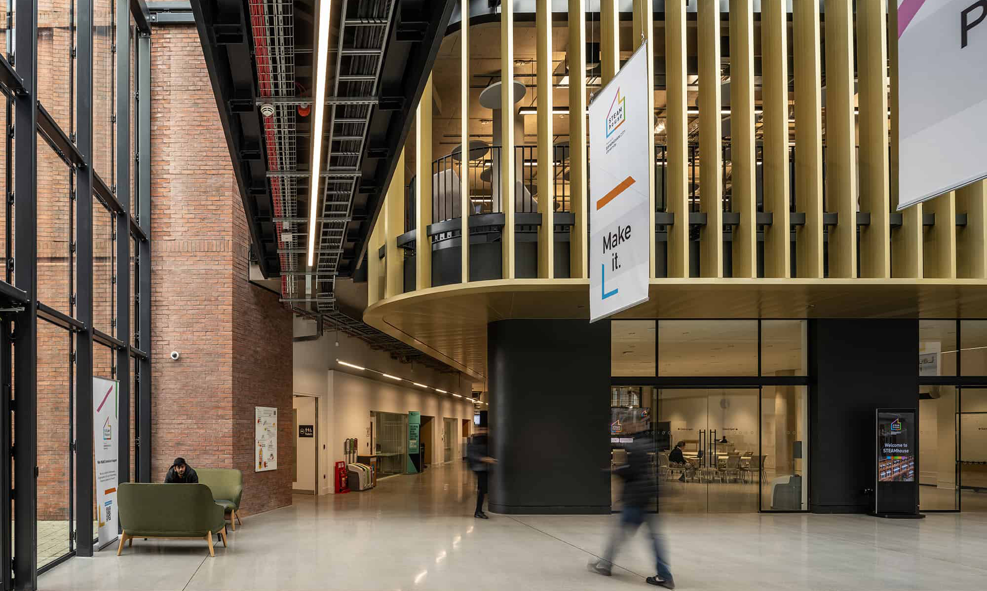 A stunning new building, we’re pleased to have been awarded this project and are proud to be breathing new life back into the Belmont Works factory working with Aukett Swank – creating a future to house a collaborative community and support local business growth activities. The new STEAMhouse boasts five storeys of facilities, originally built in 1899 as the headquarters of the Eccles Rubber and Cycle Company! We created an environment that would nurture idea creation through collaboration and co-working.