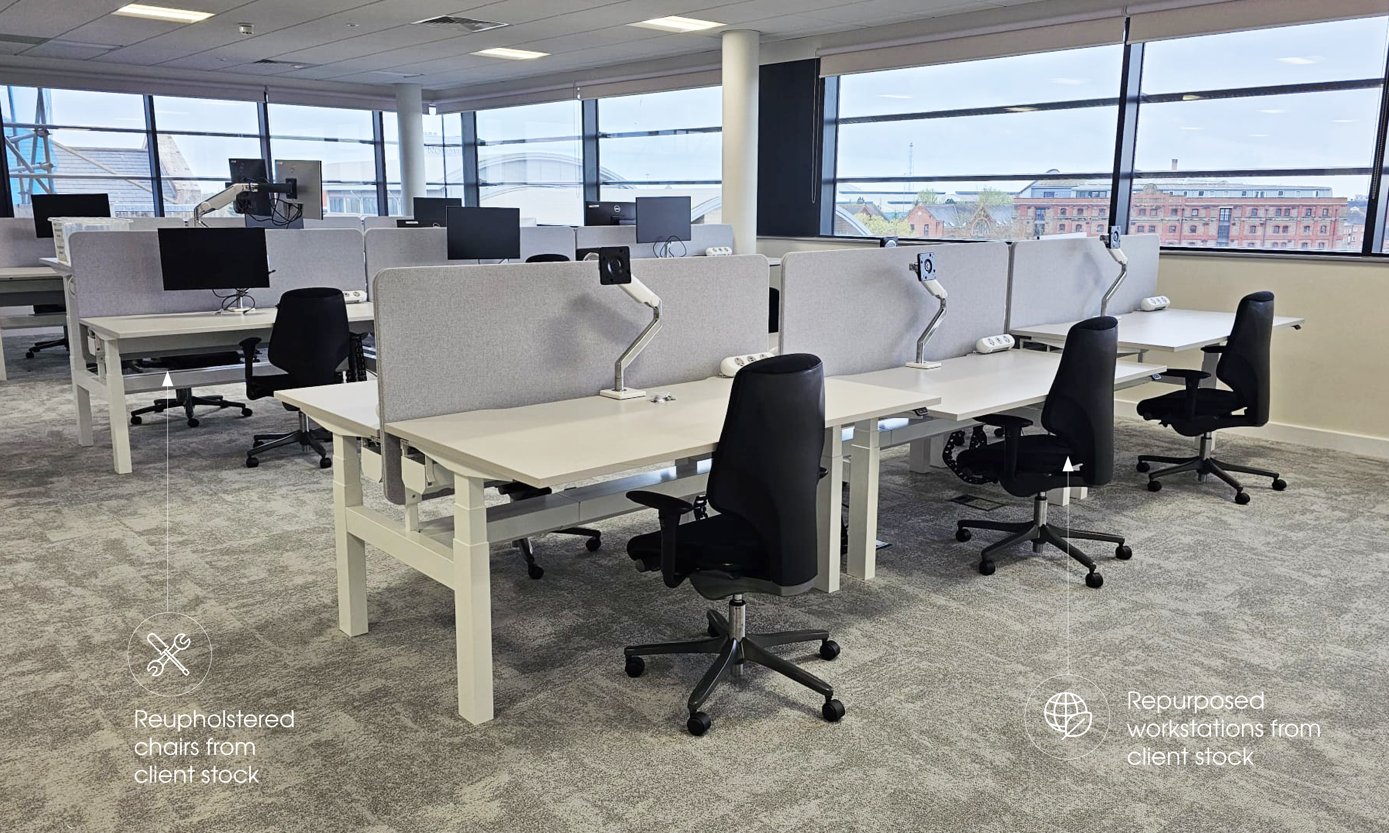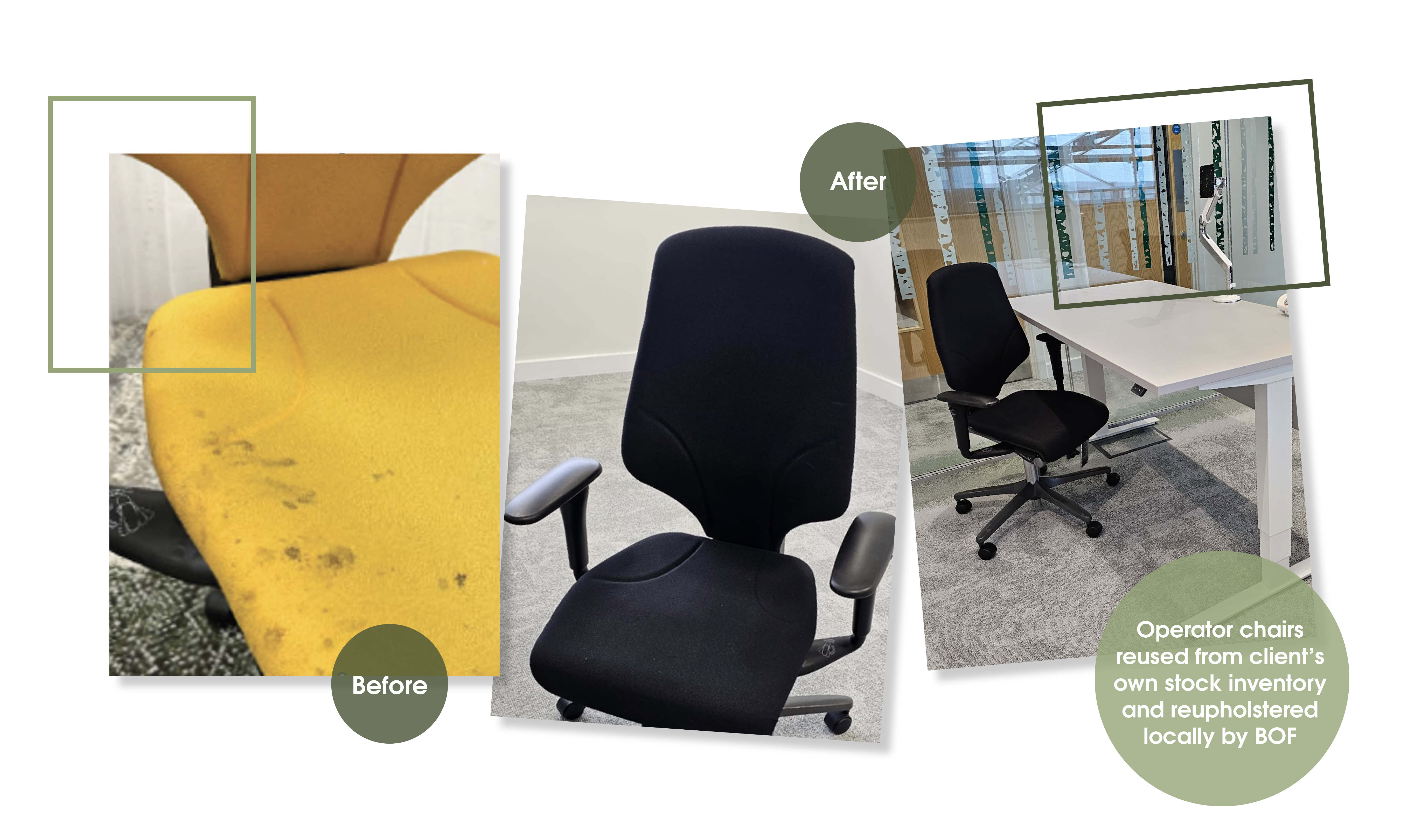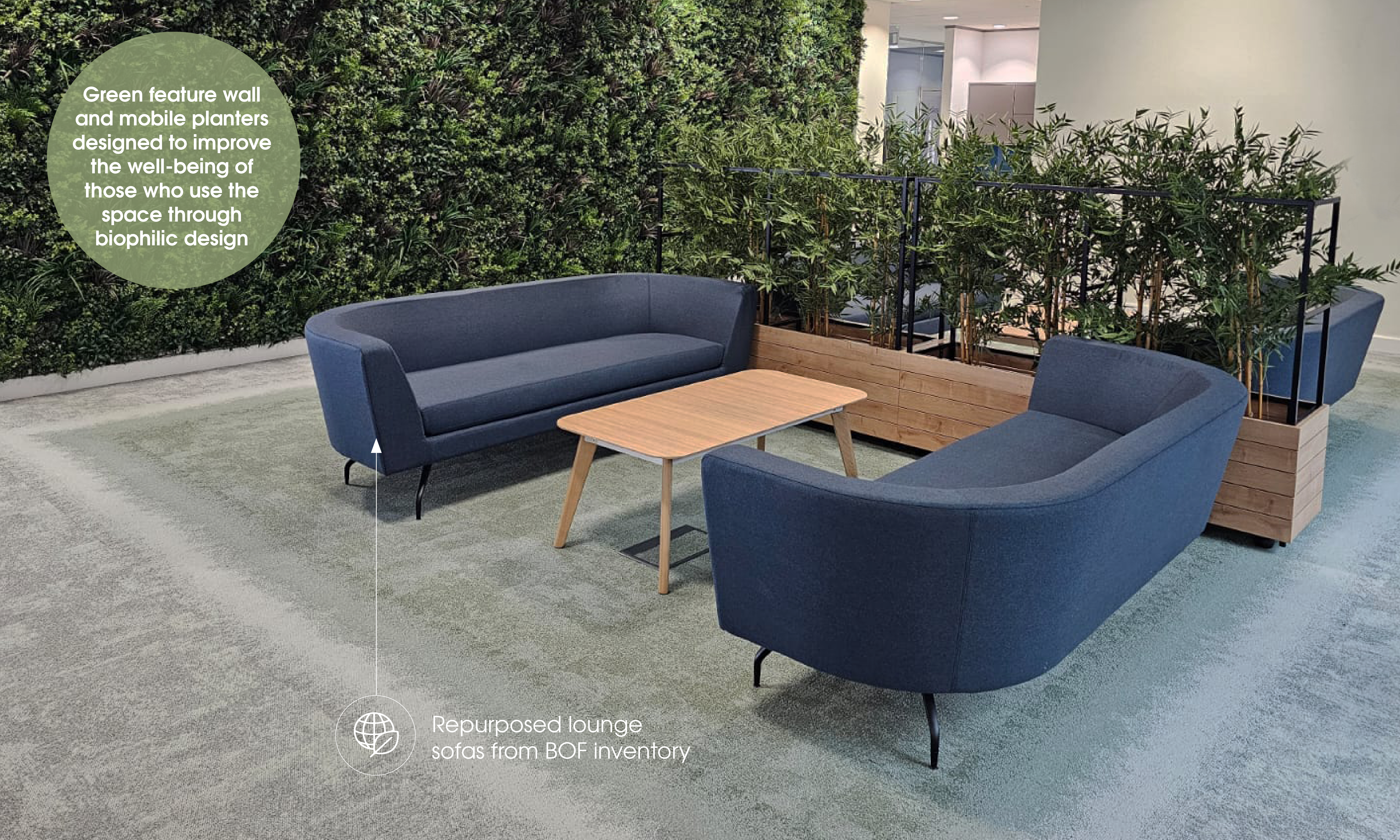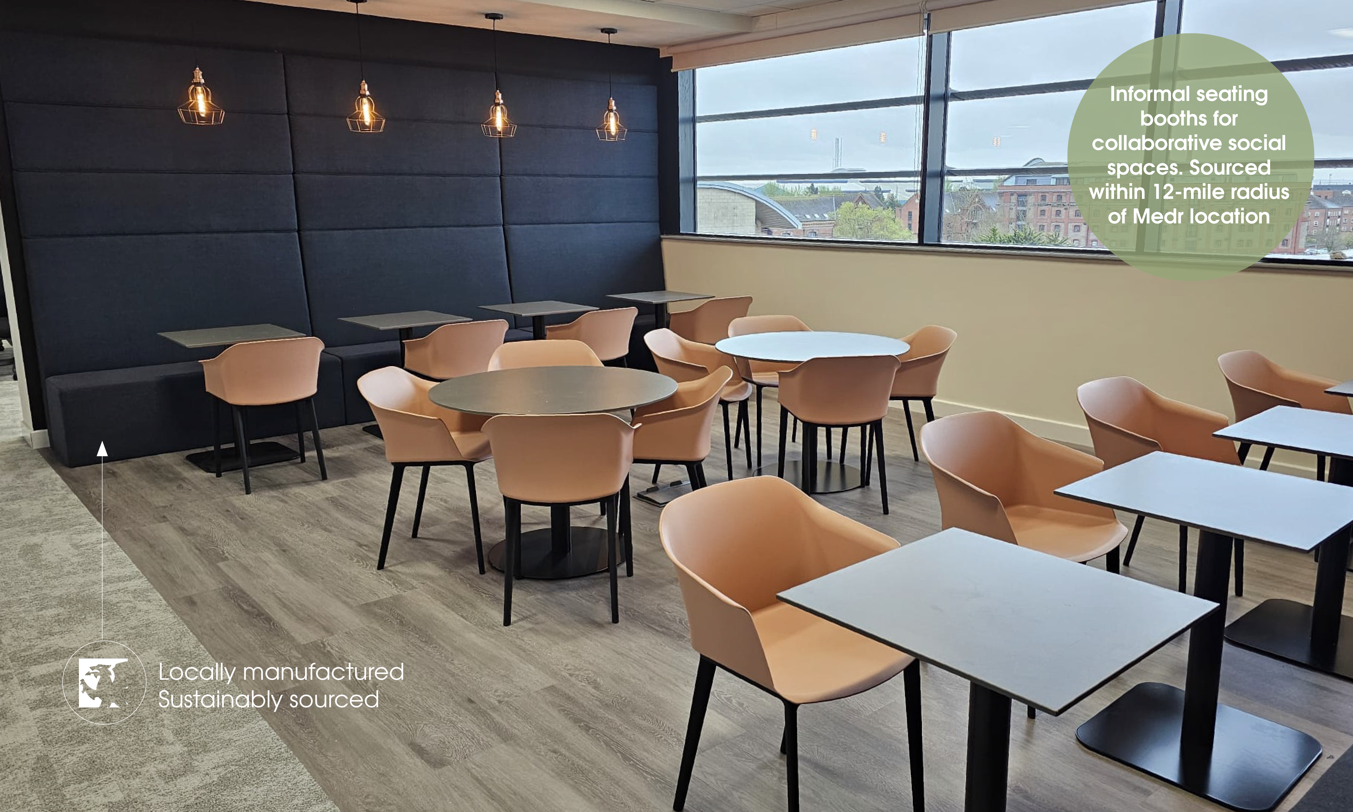 It was excellent to lead the design for this project working in conjunction with our client. We provided the best possible furniture a mix of reupholstered, reused, and new items supporting our local supply partner network, embedding Circular Economy principles and delivering against Net Zero goals. 60% of the furniture was reused from client stock and 40% was procured in Wales, supporting local employment.