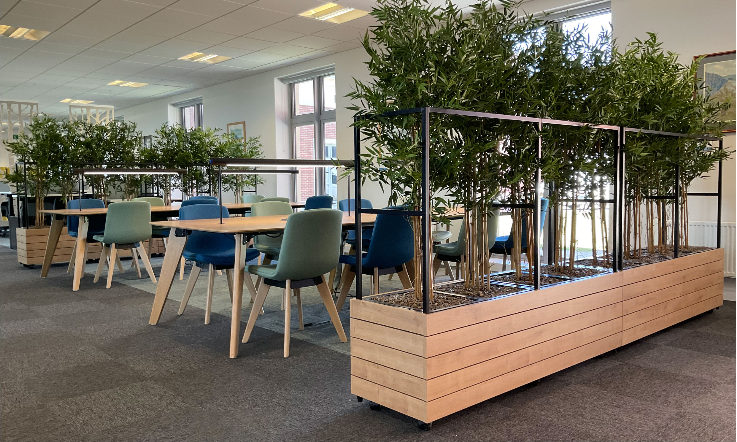 Our most recent project at Swansea University, Bay Campus Library highlights how we use products to ensure the elements of an inclusive and flexible environment. Focusing on a variety of furniture, organic shapes, biophilia and lighting to ensure all using the facility can feel and work at their best. Sustainability was maximised throughout the project, we collaborated with local manufacturers, aiming to keep our client carbon footprint to a minimum.