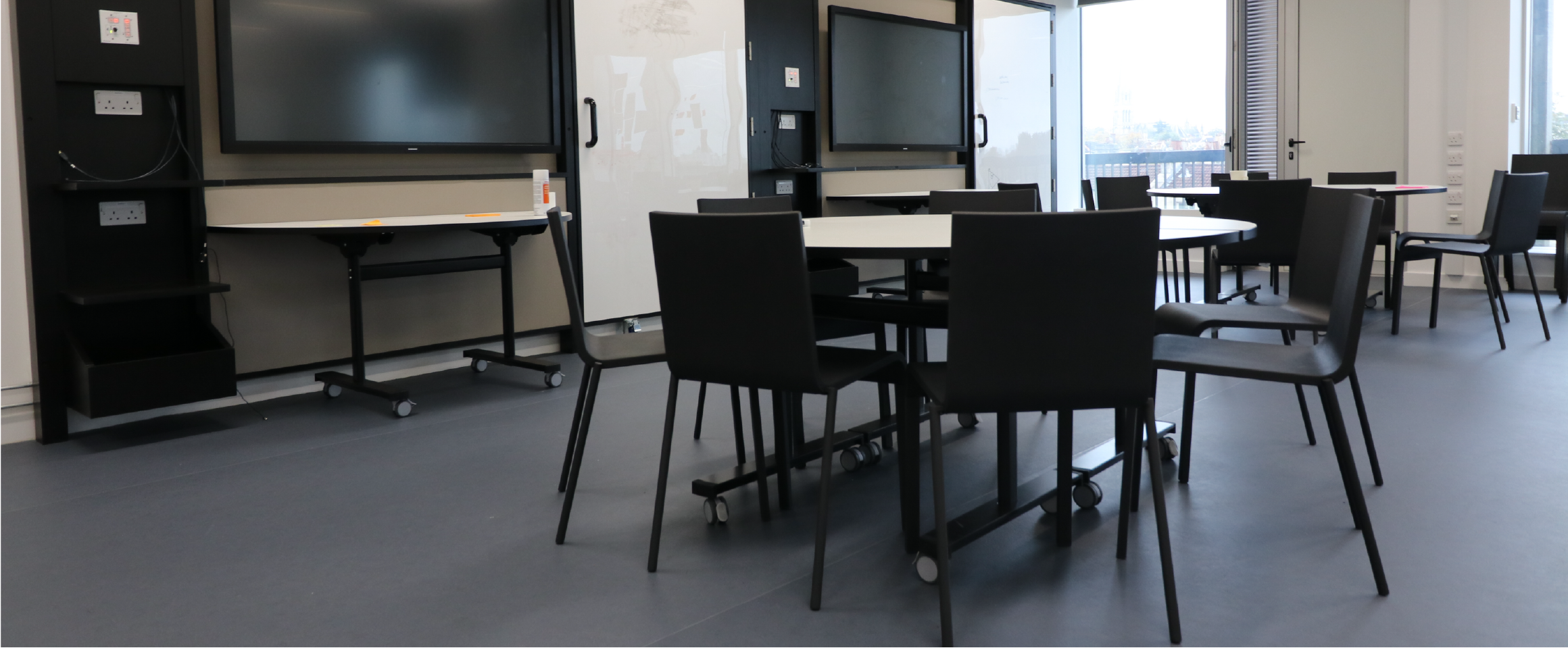 The brief was to create flexible teaching accommodation planned to last a minimum of 5 years. Materials were chosen for their robustness and ability to provide background for temporary displays and ongoing student discussions and presentations with whiteboards and video presentation.