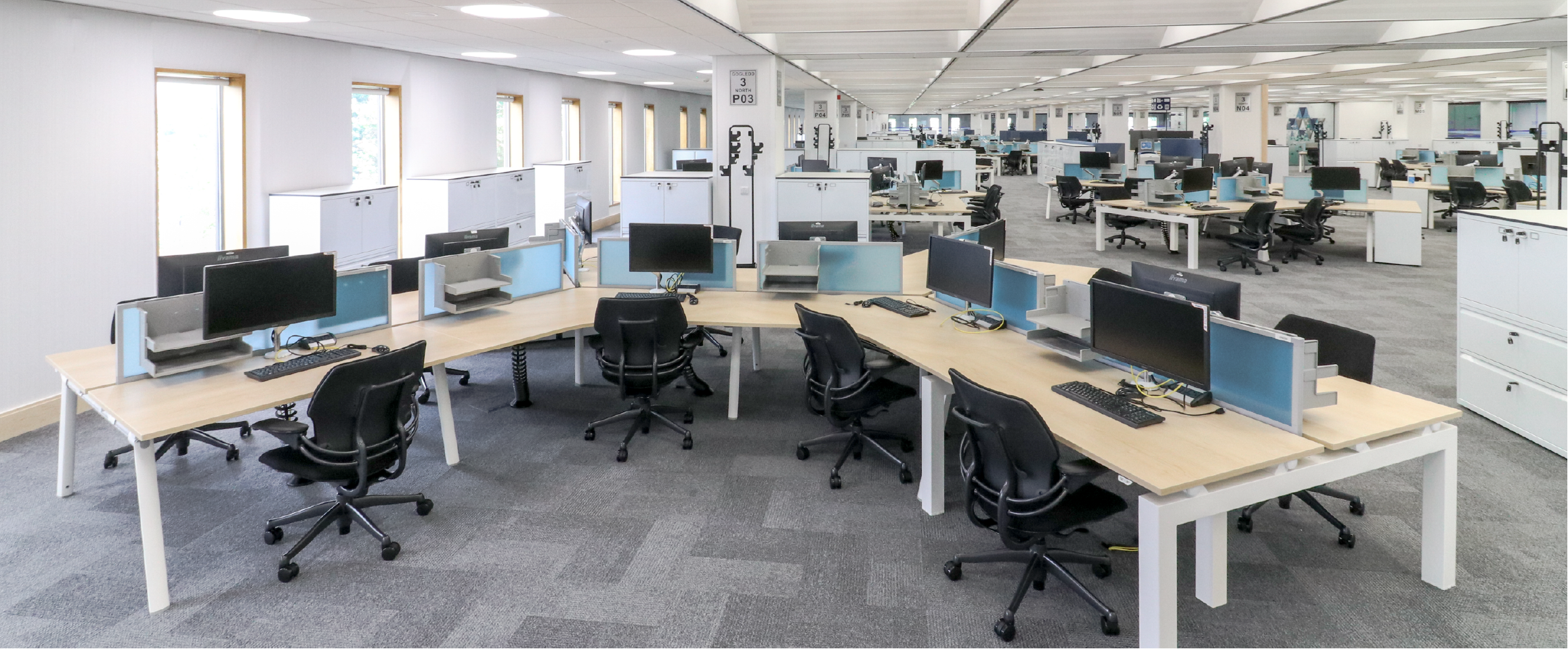During the refurbishment period BOF Capital Projects and Design teams collaborated closely with the client on the final specification for the new furniture scheme ultimately leading to furniture installation programme commencing in early 2018 when BOF were allocated a provisional installation period of 8 weeks but actually completed the install within a 4 week window – an achievement far exceeding expectation and greatly appreciated by the client. The extensive furniture portfolio deployed to this project included: 300 Crossover bench workstations from Senator, over 250 Humanscale Freedom task chairs and 155 Bisley Myspace Lockers.