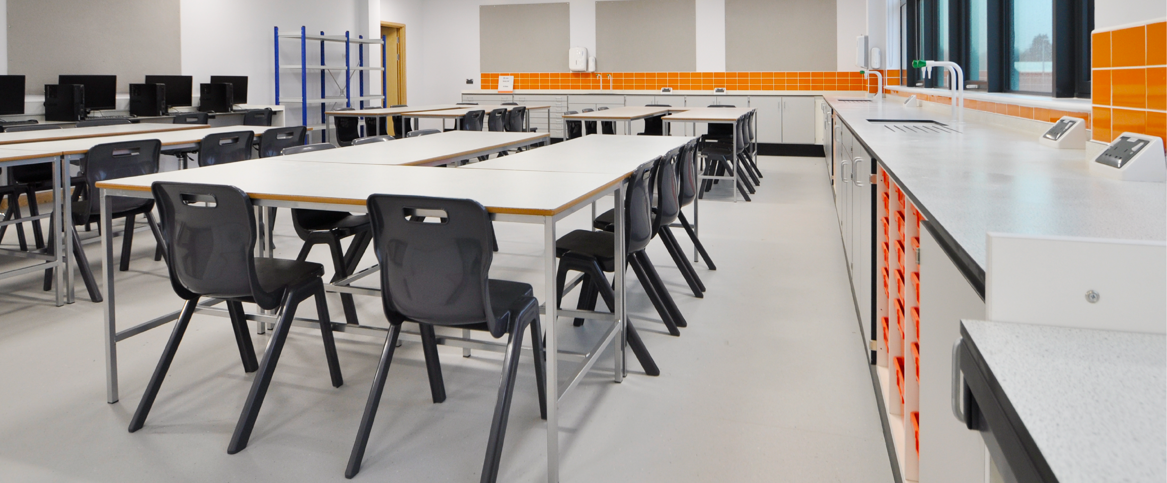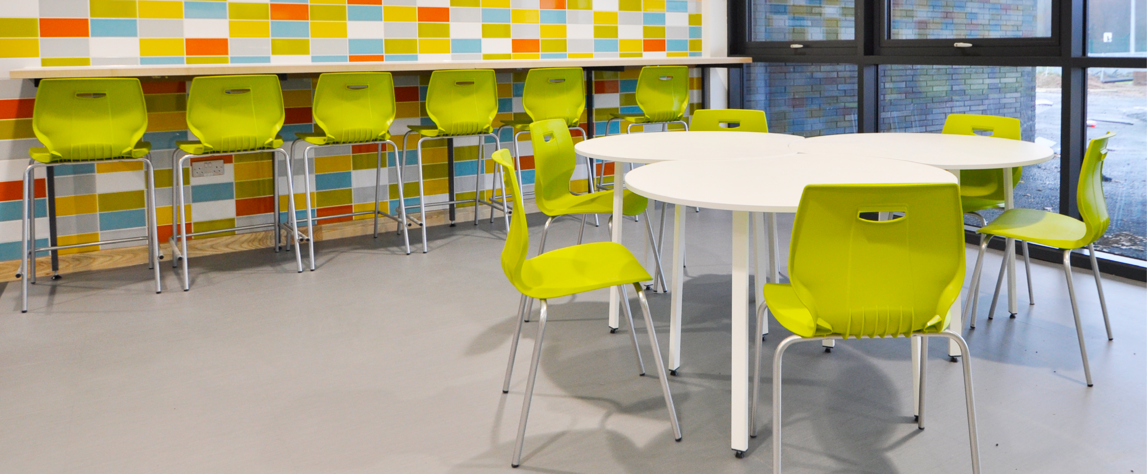 We were chosen to provide inspiring environments throughout the whole school. This included flexible classrooms, hard wearing science labs and relaxing spaces for the students to dine and relax